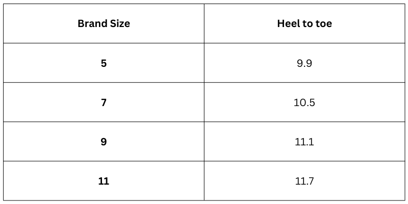Size Chart (inches):